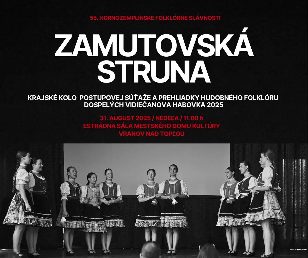 Zamutovská struna, krajská súťaž hudobného folklóru dospelých – Vidiečanova Habovka 2025. Účinkujú postupujúci regionálnych kôl Vidiečanovej Habovky Prešovského samosprávneho kraja.